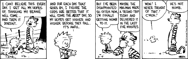 And like Calvin's beanie, it was of course somewhat less-than I had expected, "As almost all hats are".